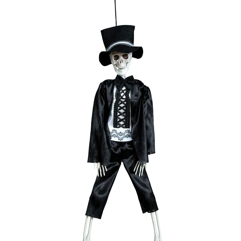 Non lasciare che il tuo matrimonio del terrore o la tua festa di Halloween passino inosservati. Aggiungi il nostro Sposo Scheletro Pendente con Cilindro al tuo carrello ora e preparati per una celebrazione che i tuoi ospiti non dimenticheranno mai. A un prezzo che non ti farà paura!